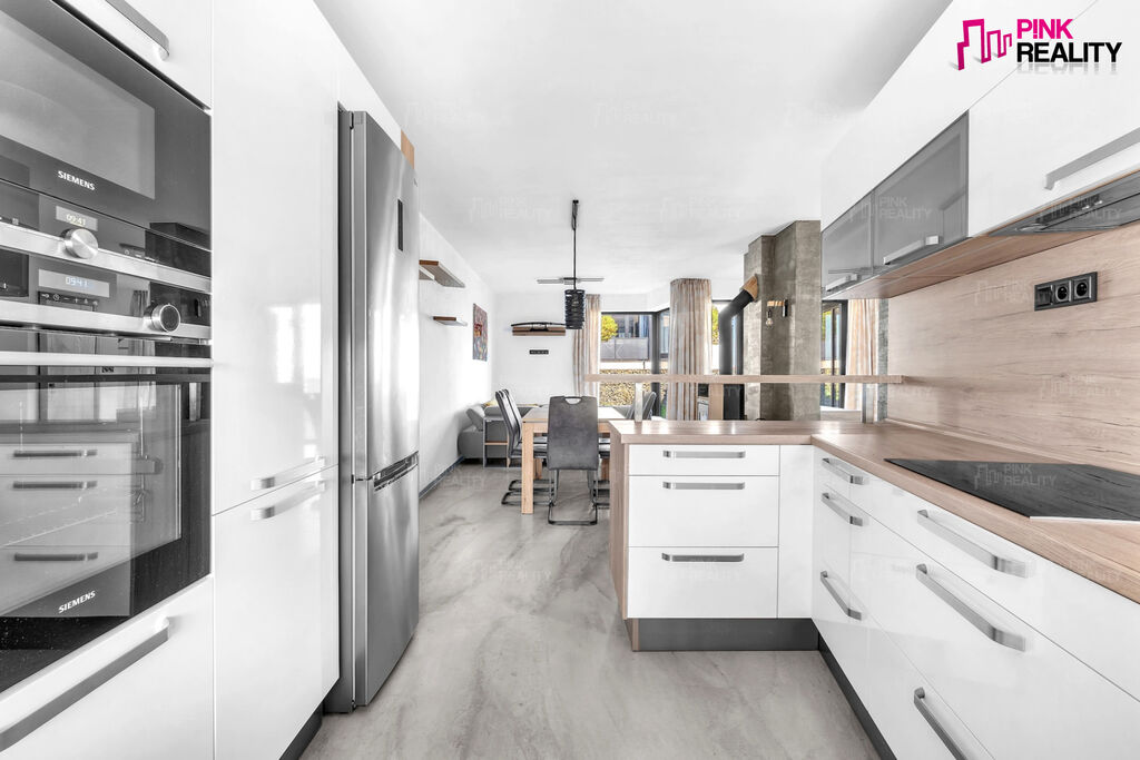 Nabízíme k prodeji dvoupodlažní rohový řadový rodinný dům 5+kk s garáží a zahrádkou ve velmi žádané lokalitě obce Kvasiny. Dům byl postaven v roce 2021, je posledním v bloku pěti řadových domů a díky tomu má i samostatný přístup na zahradu. Dispozice 1.NP jsou prostorné zádveří s úložným prostorem a vstupem do garáže, kuchyně s jídelnou a velký obývací pokoj s krbovými kamny a vstupem na zahradu, pracovna a WC. Do 2.NP vede betonové schodiště obložené dřevem, kde vstoupíme na prostornou centrální chodbu, dále se zde nacházejí tři pokoje, koupelna s vanou i sprchovým koutem a WC, technická místnost a dva balkony. Součástí kupní ceny je kuchyňská linka včetně vestavěných spotřebičů. Pro více informací či prohlídku kontaktujte naši bezplatnou linku.