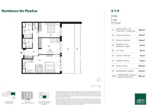 Nabízíme vám moderní byt 3+kk o ploše 77,9 m² s předzahrádkou 12,9 m², terasou 27,2 m² a výhledem do klidného vnitrobloku. Ideální koupě pro rodinu či pár.