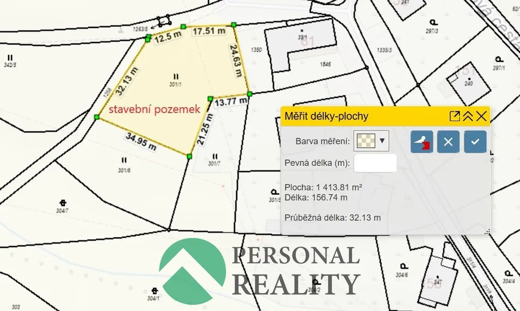 Jeden z pozemků je stavební (1410 m2) a druhý může sloužit jako zahrada (1027 m2). Oba jsou aktuálně vedeny jako trvalý travní porost.