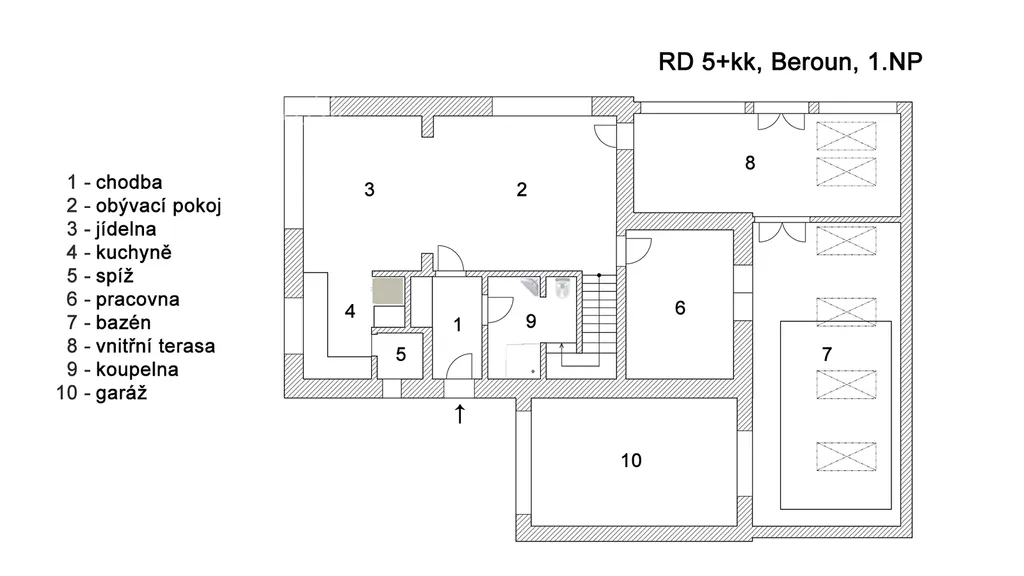 Krytý bazén je tou pomyslnou třešničkou a pro nové majitele je důležitá informace o jeho napojení na tepelné čerpadlo i připravenosti místa pro infra saunu. Navazující uzavřená terasa slouží k odpočinku a zábavě s přáteli.