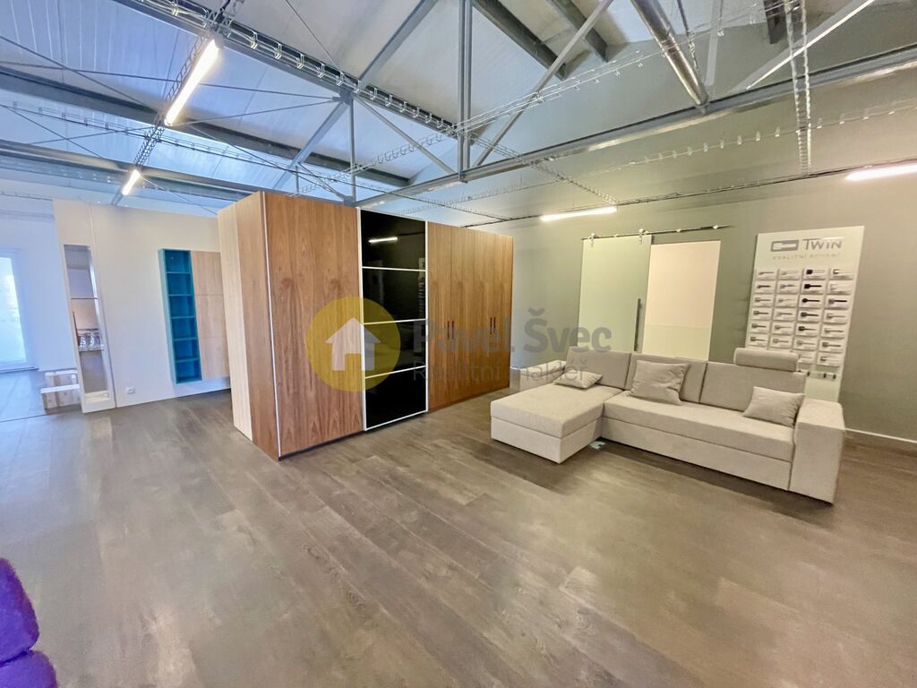 Hlavní budova a navazující dílna: kanceláře, recepce s prezentací formou otevřeného prostoru showroomu (cca 207 m2), sociální zázemí vč. šaten, sprch, WC pro zaměstnance. V přízemí lze vjíždět dodávkami případně vysokozdvižnými vozíky a nakládat/skládat. Tento prostor již patří k výrobě a dál pokračuje.