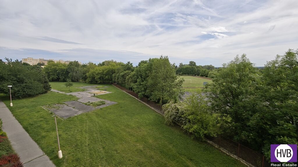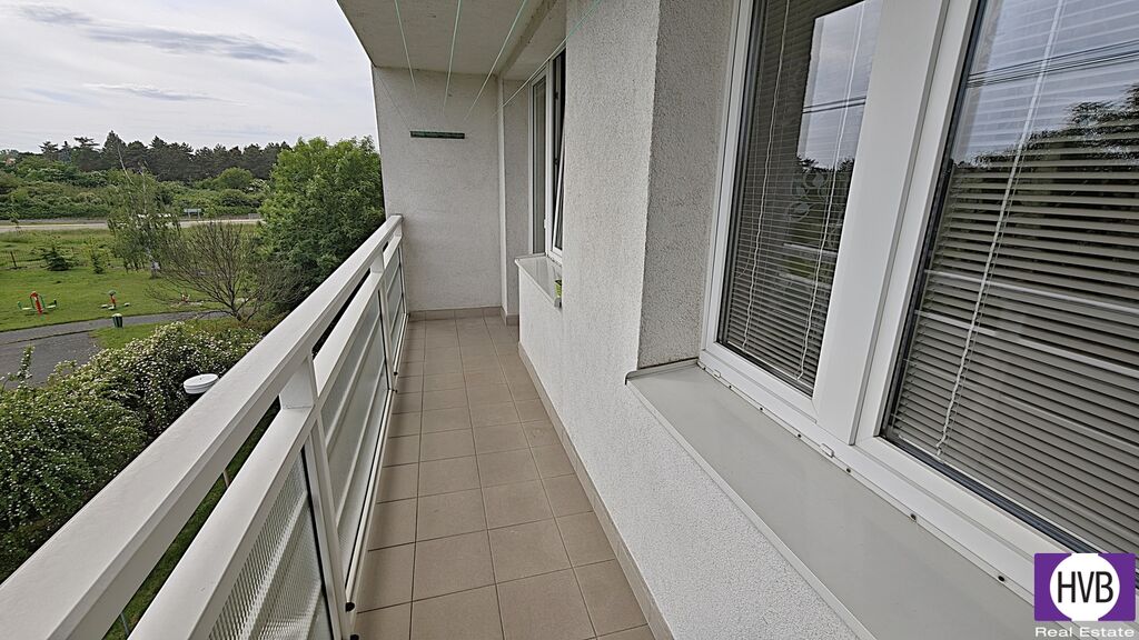 Dispozice bytu zahrnuje dostatečně prostorný obývací pokoj s otevřeným propojením s moderně vybavenou kuchyní a vstupem na lodžii (7 m²), směřující do zeleně. Dále jsou v bytě dvě samostatné ložnice, předsíň se vstupem do všech místností, koupelna s vanou, samostatné WC a komora. K bytu náleží dvě sklepní kóje (3 m²). K dispozici je společná kolárna, přímo před domem se nachází velké parkoviště.