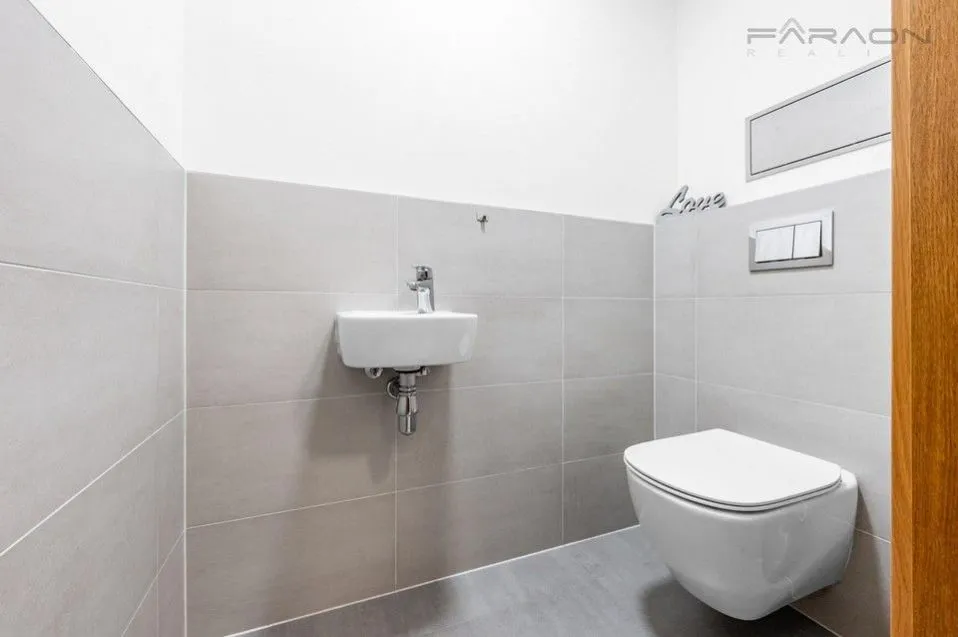 Vybavení - kuchyňská linka v bílém designu se spotřebiči( lednice s mrazákem, elektrická a mikrovlná trouba, myčka, lednice s mrazákem, sklokeramická varná deska), dřevěná okna s izolačními trojskly, exteriérové žaluzie na dálkové ovládání ve všech pokojích, dubové podlahy, vestavěný nábytek, moderní kuchyni a designovou stěrku v jídelně. . Nízké měsíční náklady, energetická třída B.
