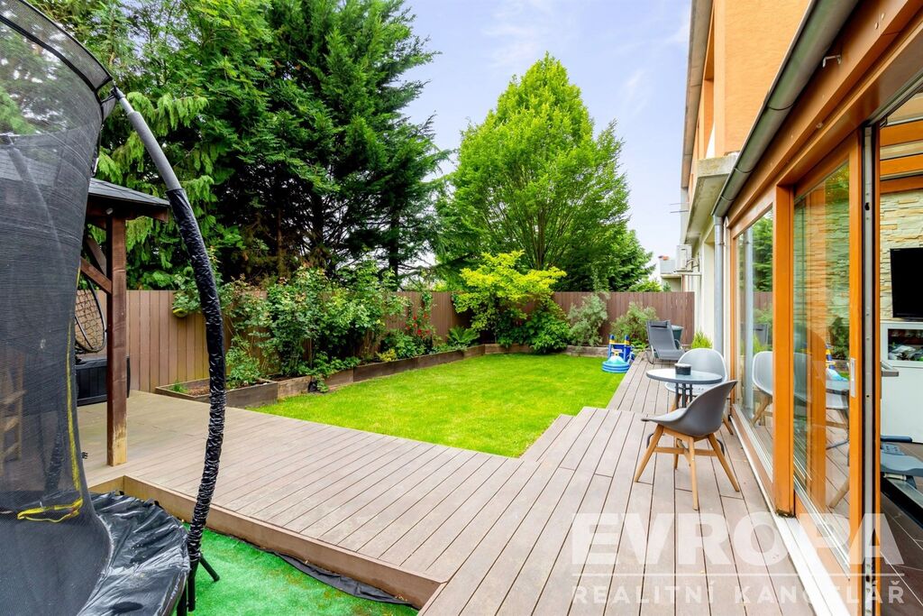 Ticho vilové čtvrti, soukromá zahrada, sauna a perfektní spojení.