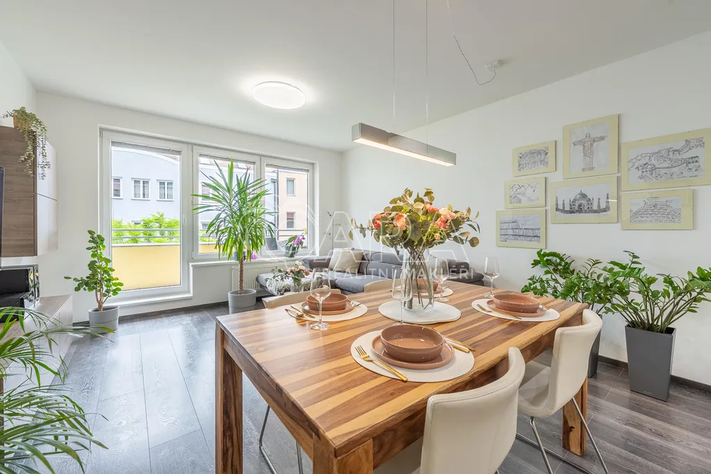 Exkluzivní nabídka prodeje bytu o dispozici 4+kk s lodžií a balkonem, ul. Tyršova, Benešov. Byt je umístěn ve 3. NP bytového domu s výtahem z roku 2012 nacházejícím se téměř přímo v centru města.