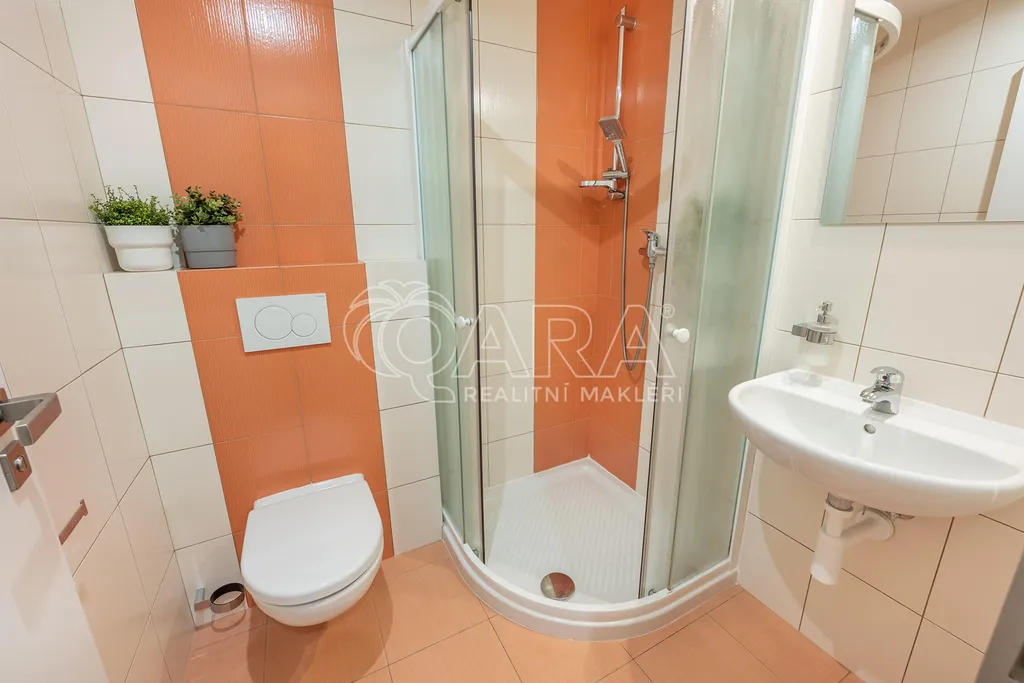 Byt o celkové výměře 136,2 m2 (vnitřní plocha 113,5 m2, balkon 7,2 m2, lodžie 12,5 m2) je výjimečně dobře dispozičně řešen a sestává ze vstupní chodby, obývacího pokoje s kuchyňským koutem, 3 ložnic, koupelny se sprchovým koutem a WC, chodby a koupelny s vanou a s WC. Z obývacího pokoje a ložnice je možný vstup na jižně orientovanou lodžii, ze dvou dalších ložnic pak je vstup na severně orientovaný balkon. V celém bytě je položena plovoucí podlaha, v předsíni a v koupelnách je dlažba. Vytápění zajišťuje centrální plynová kotelna v domě. Měsíční poplatky za byt jsou 3 995,- Kč + zálohy na elektřinu. Dům je vybaven výtahem. V suterénu domu jsou garáže vybavené kamerovým systémem, kde je možnost pronajmout si garážové stání.