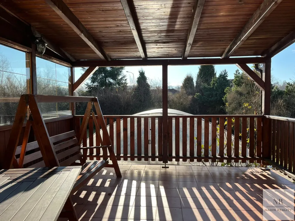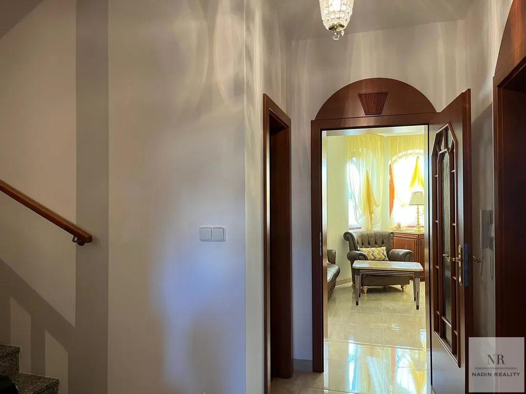 Dům nabízí komfortní bytové uspořádání ve dvou patrech. V přízemí se nachází světlý obývací pokoj s krbem, který vytváří útulnou atmosféru pro relaxaci a setkání s rodinou a přáteli. Z obývacího pokoje je přístup do plně vybavené kuchyně a jídelny, kde se můžete těšit na příjemné rodinné večeře. Z jídelny je rovněž vstup na terasu, ideální pro letní posezení a relaxaci u bazénu.
