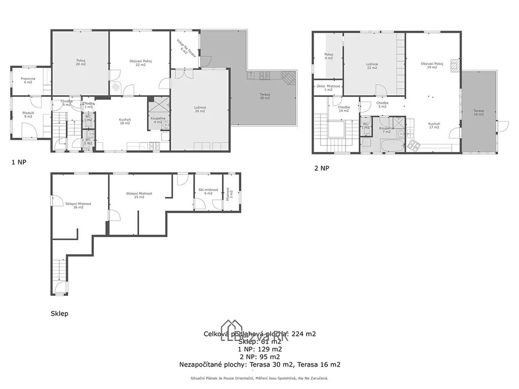 Přízemí: bytová jednotka 4+1 s kuchyní, obývacím pokojem, třemi ložnicemi, koupelnou a WC