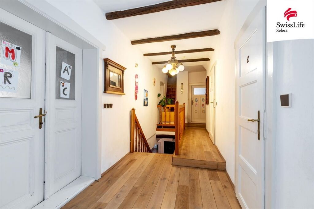 Pronajímaná část domu (byt č. 1) o ploše 364 m zahrnuje v přízemí kuchyň, jídelnu s kachlovými kamny a obývací pokoj s krbem, dále pak samostatnou toaletu, koupelnu a šatnu. V 1. patře 4 samostatné pokoje/ložnice s koupelnou a samostatnou toaletou a v 2. patře pak podkrovní pokoj s umyvadlem a toaletou. Dům je částečně vybaven. K užívání je též venkovní terasa s kamenným stolem, pergolou a jezírkem, sklepení s možností zřízení stylového vinného sklípku (vstup z kuchyně i zahrady) a tři parkovací stání (2 krytá, 1 venkovní). Cena pronájmu je 70 000 Kč + 25.000 Kč zálohy na služby (el. energie, plyn, voda, odpad, vytápění, ostraha). Nájemce si hradí běžnou údržbu, větší opravy zajišťuje pronajímatel.