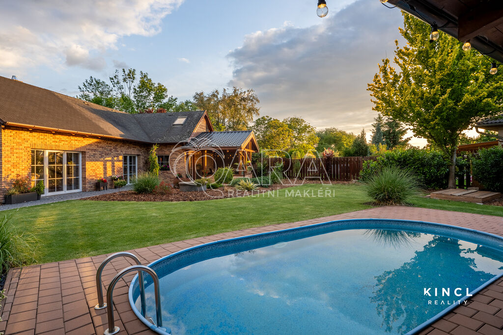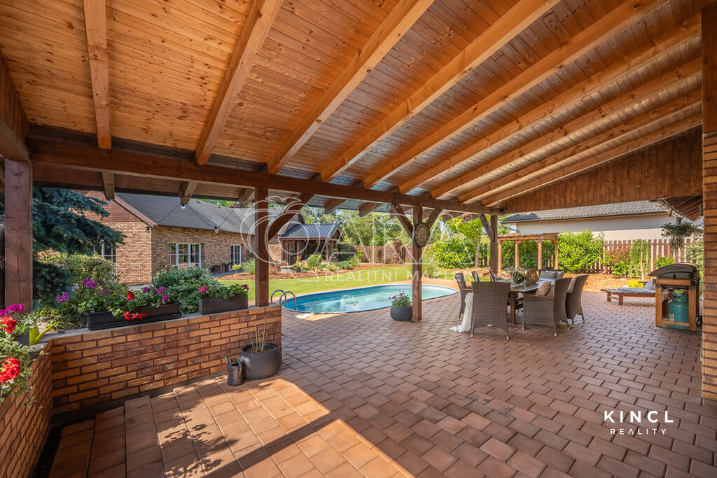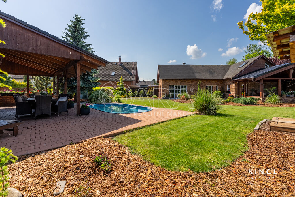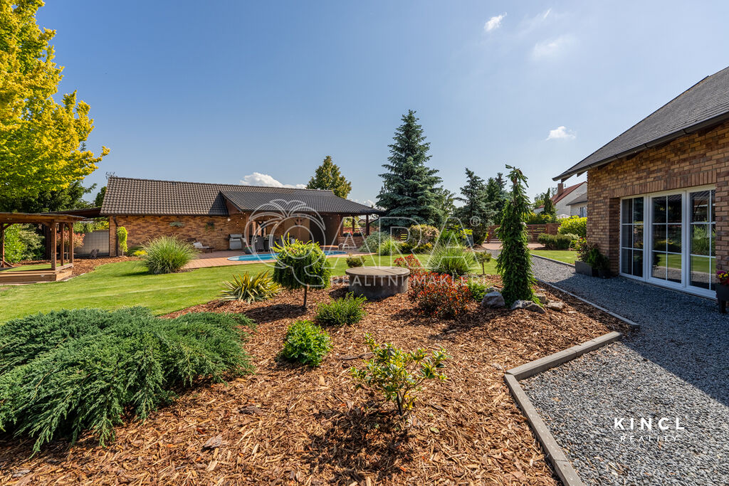 Užijte si rozlehlou zahradu s bazénem, vzrostlou vegetací a dvěma krytými pergolami (jedna na sever, druhá na jih) pro relaxaci za každého počasí. Parkování je zajištěno čtyřmi stáními (jedno kryté) s elektrickými vraty.