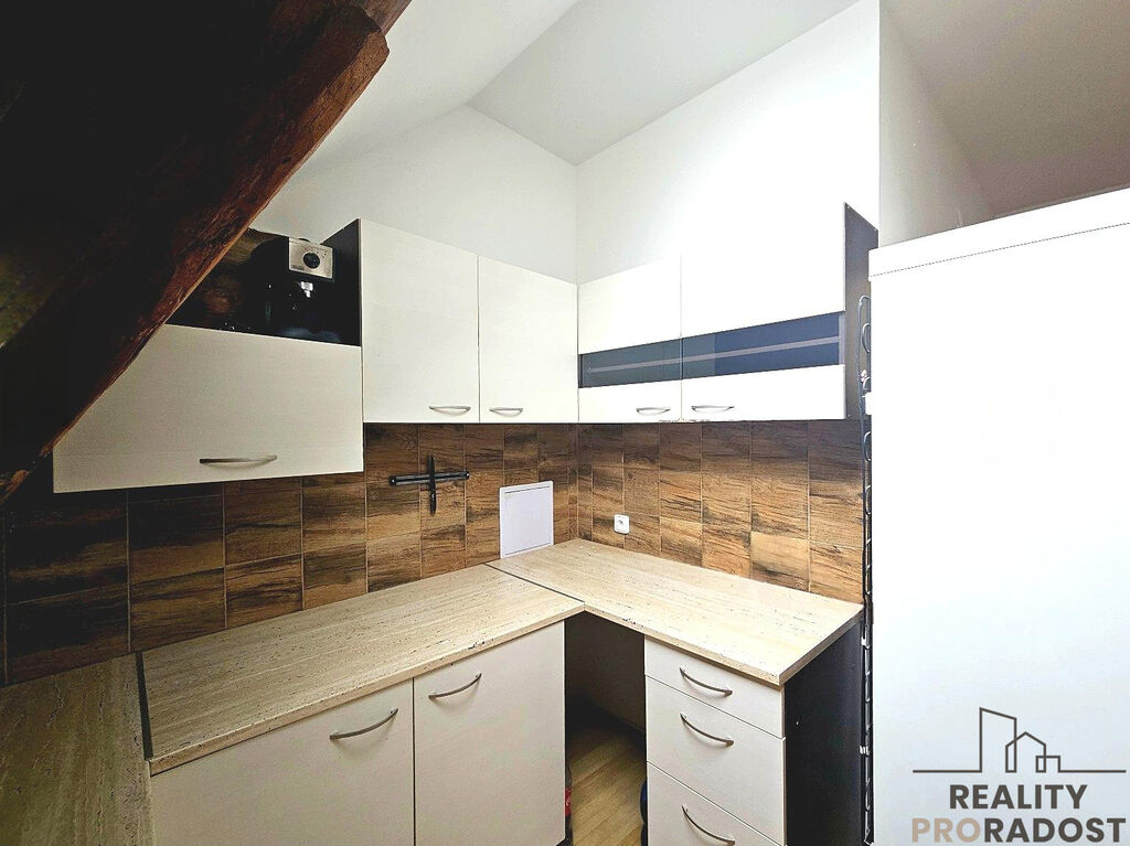 Z předsíně se dostaneme do prostorného obývacího pokoje s velkým oknem s výhledem, díky kterému je byt krásně světlý. Velký kuchyňský kout je šikovně umístěný v rohu a nenarušuje prostor. V ložnici je dostatek místa na velkou postel a skříň lze ponechat. V koupelně vana, umyvadlo a toaleta. Ohřev vody a vytápění je centrální. Byt je v 1.patře domu, má svůj vchod a vedou k němu schody. Nyní se byt maluje a připravuje pro nového nájemníka.