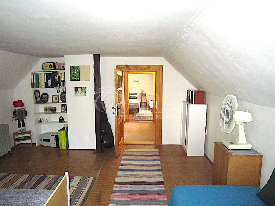 Zprostředkujeme Vám ke koupi RD s dispozicí 3+1 o celkové, obytné ploše 110 m2, stojícího na pozemku o rozměru 612 m2 v malebné obci Želízy – okres Mělník. Dům je možno využívat a to jak k trvalému bydlení, tak i rekreaci v lokalitě plné zeleně, lesů a přitom pouze pár minut od nedalekého města Mělník. Vlastní dům sestává ze dvou nadpodlaží v jehož prvním nalezneme předsíň, chodbu, obývací pokoj, kuchyni, koupelnu se sprchovým koutem, toaletou a také v tomto prostoru určitě oceníme kamna na dřevo, které zabezpečí příjemné vytápění celého domu. Do druhého nadpodlaží se dostaneme po stylových, dřevěných schodech, které nabízí dvě ložnice. Na pozemku je vystavěna stodola, která slouží jako dílna a také prostor, který je využíván jako venkovní kuchyně. Úžasný výhled zajišťuje zastřešená veranda, která nabízí jak již zmiňovaný výhled do krajiny, tak i příjemné posezení a relaxaci. Na pozemku je také sklípek, který zajišťuje stálou teplotu, ideální pro uchovávání vína, parkování je možné ve stodole a před domem jsou dvě parkovací místa. Stávající majitelé dávají velký důraz nejenom na údržbu domu, ale i na zahradu, kde, pěstují rozličné ovoce, zeleninu a určitě oceníme celkový ráz tohoto celku, kde se budete určitě velmi příjemně cítit. Dům je napojen na obecní vodovod, odpad je řešen jímkou a do domu je přivedena elektřina, která je využívána i k vytápění domu. Okolí domu je ideální pro milovníky klidného bydlení, procházek i výletu na kolech. V blízkosti se nachází mnoho turistických tras, skalních útvarů, historických památek a celá oblast spadá pod CHKO a nedaleko také nalezneme veřejné koupaliště. Občanská vybavenost je v místě základní, nicméně nedaleké město Mělník nabízí maximální zajištění všech potřeb. Dopravní dostupnost zajišťují autobusy MHD, jejichž zastávka je v docházkové vzdálenosti od domu. Vzhledem k těmto všem atributům, doporučujeme tento dům ve velmi krásnem prostředí ke koupi.