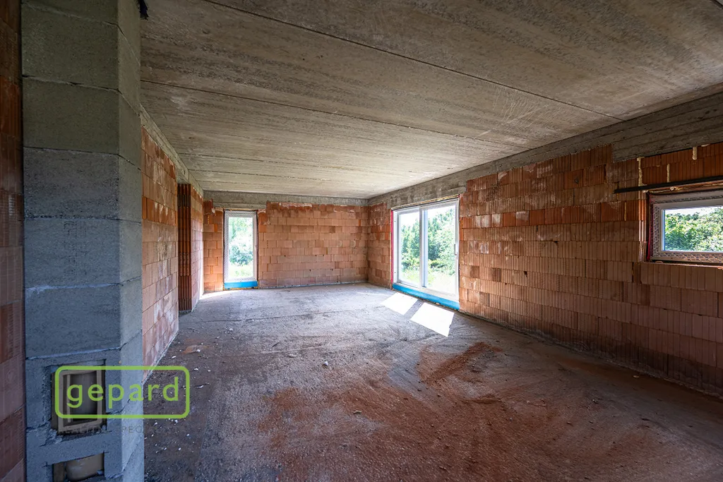 Realitní společnost Gepard nabízí k prodeji rozestavěný rodinný dům o celkové ploše 200m2 s pozemkem o velikosti 770m2 v klidné lokalitě pouhých 200m od Teplic. V současné době je dokončená hrubá stavba včetně příček, střechy, oken a vchodových dveří (projekt je k dispozici). K domu je přivedena přípojka vody a elektřiny, odpad je řešen septikem. V přízemí domu se nachází obývací pokoj s kuchyní, pokoj, zádveří, technická místnost, WC a sklad, ve 2. podlaží se nachází ložnice s koupelnou a šatnou, dva pokoje a hlavní koupelna.
