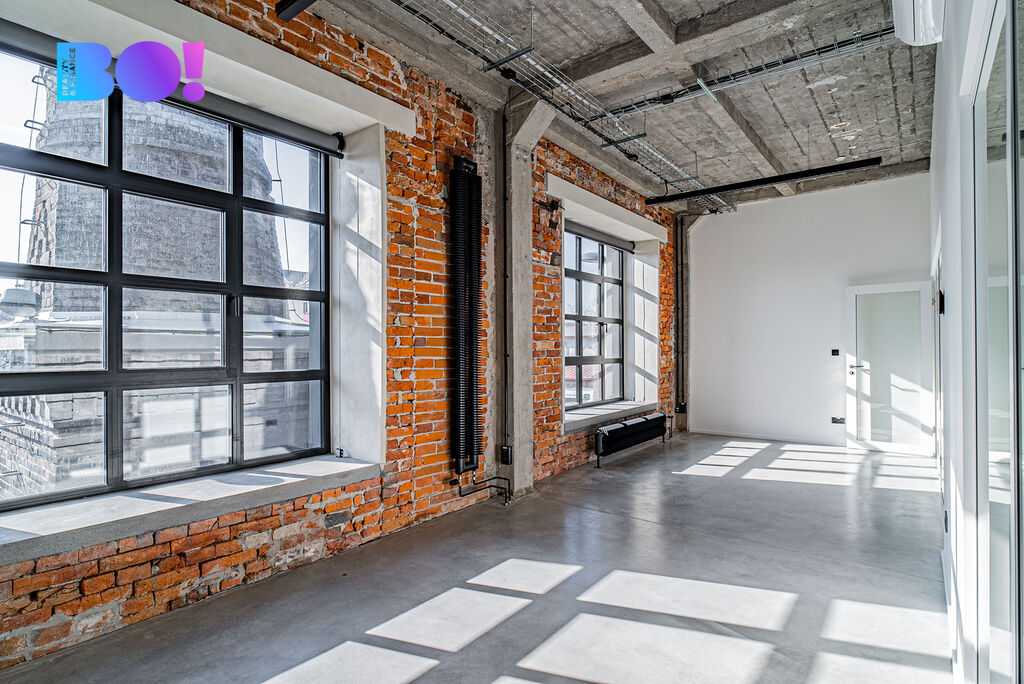 Klimatizace, vzduchotechnika, betonová podlaha, vysoké stropy, velká okna a elektrické žaluzie.