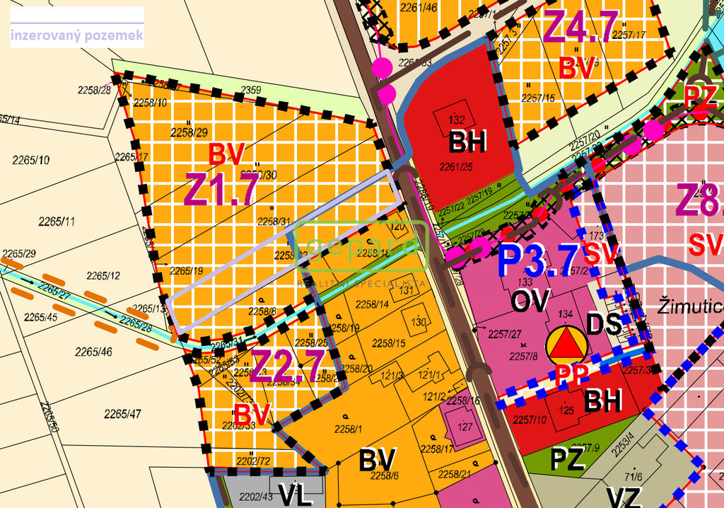 Pozemek je v územním plánu součástí plochy Z1.7 s podmínkou zpracování územní studie ÚS4.