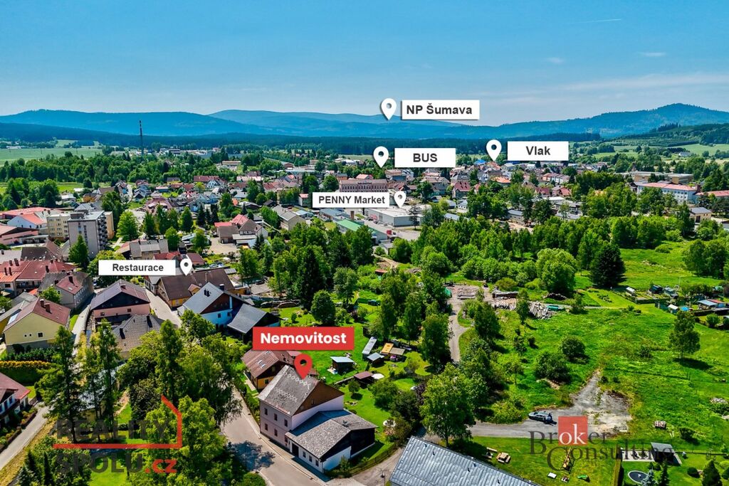 Nemovitost je ideální pro krátkodobý pronájem nebo také jako dvougenerační pro velkou rodinu. Nachází se v klidné a zelené části obce Volary. Najdete zde plnou občanskou vybavenost, zastávku autobusu i vlaku.
