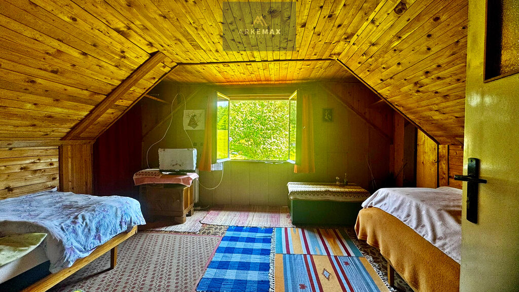 V prvním podlaží se nachází předsíň, ze které se dostanete do samostatného WC a koupelny. Dále pak do kuchyně, chodbičkou (relaxační pokoj) do hlavní místnosti o velikosti 30 m2, v zimě Vás zde zahřejí krbová kamna, samozřejmě nechybí dobový nábytek a dekorace. Z této místnosti se dostanete na terasu a zahradu samostatným vchodem. O patro výše se nachází dvě ložnice z nichž každá má 15 m2. Součástí suterénu je garáž o velikosti 25 m2, dále technická místnost a další prostor o velikosti 11 m2 s možností posezení u krbu.