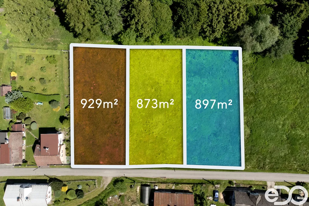Výměry jednotlivých pozemků jsou 873 m², 897 m² a 929 m².