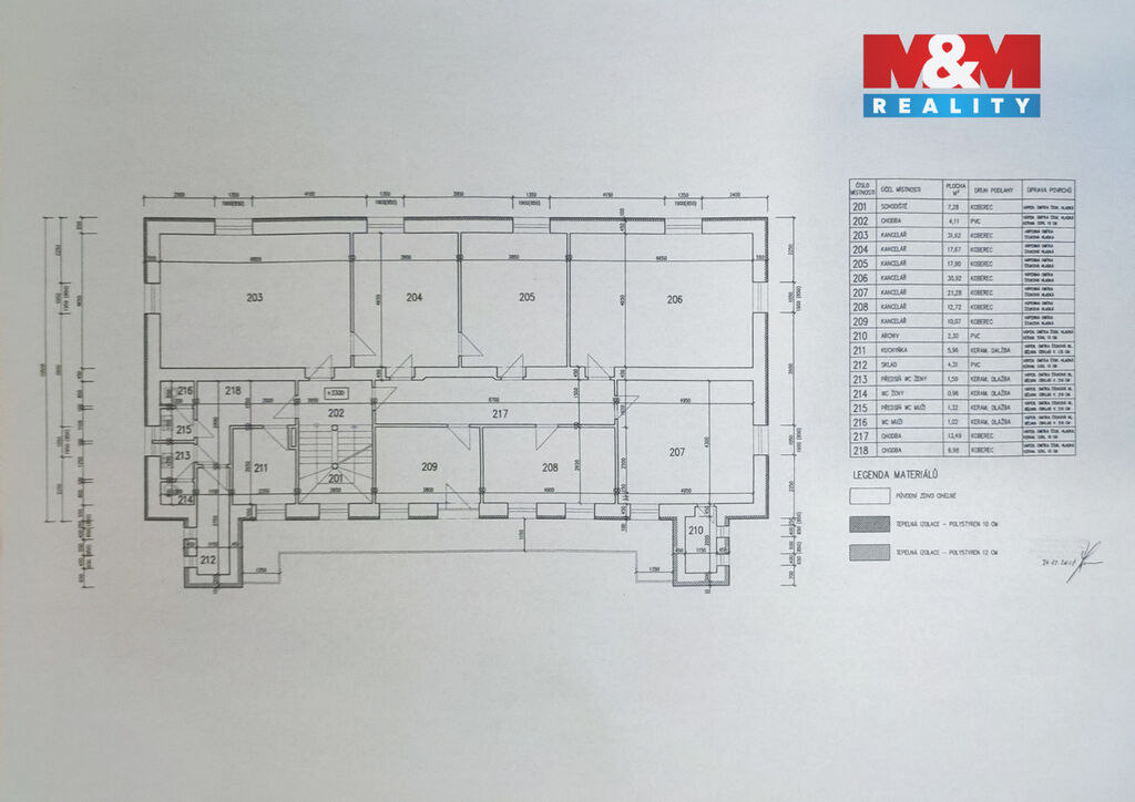 2. NP: 5x samostatná kancelář, 1x zasedací místnost, 1x kuchyňka, 2x WC,