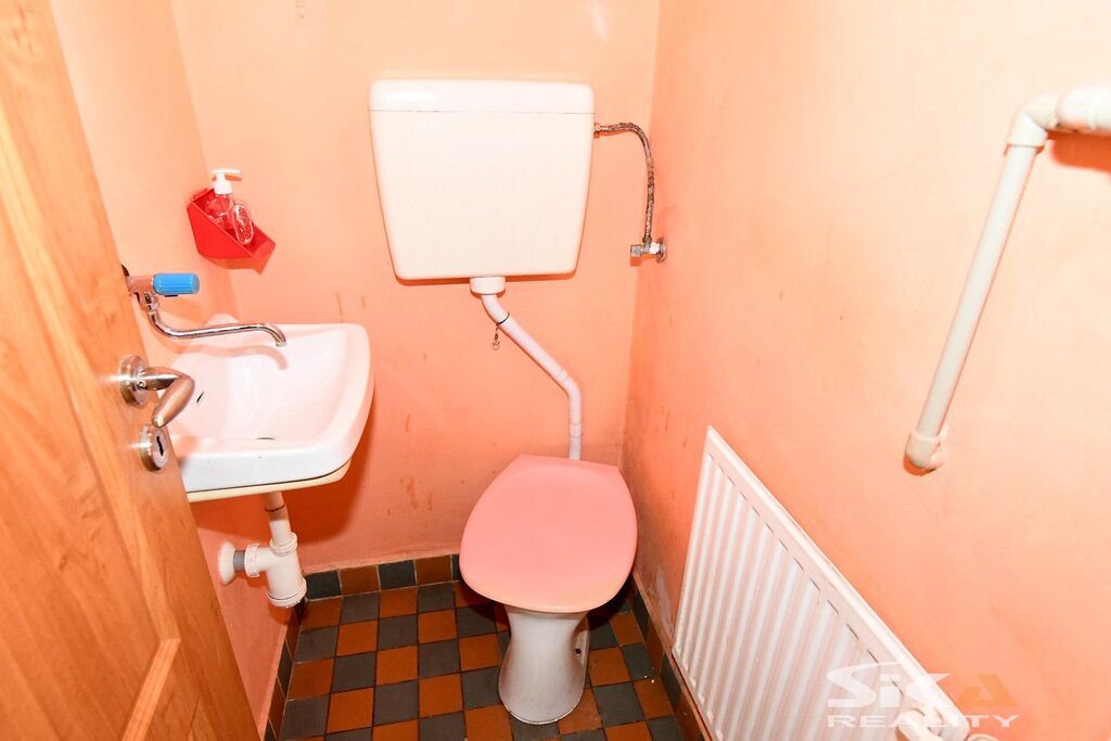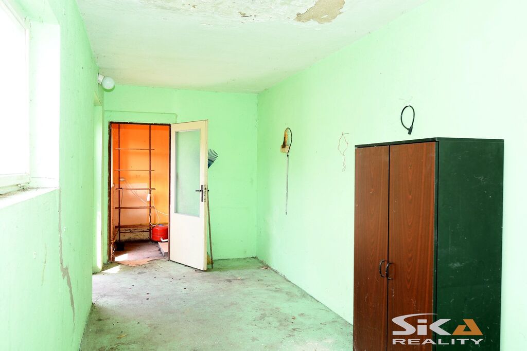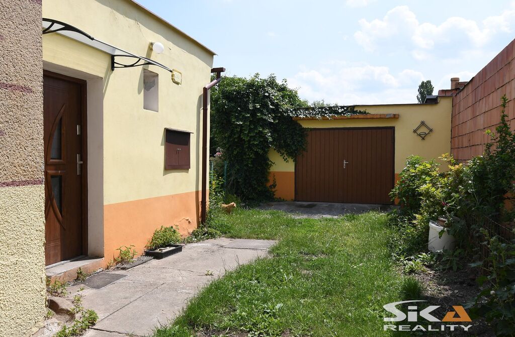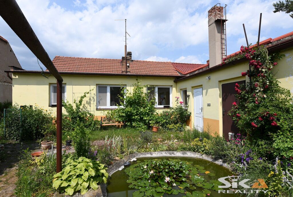 Nabízíme Vám exkluzivně k prodeji polořadový rodinný dům s velkou zahradou umístěný v centru obce Černčice. Obec je situovaná východním směrem od města Louny s nájezdem na dálnici D7 v dosahu do 4 km. Dům je umístěný na pozemku obdélníkového půdorysu o celkové výměře 825 m2, má jedno nadzemní podlaží + půdní prostor, je částečně podsklepený. Na dům navazuje do tvaru L přístavba, kterou tvoří dvě místnosti (kotelna a sklad). Dispoziční řešení obytné části (cca 100 m2) 3+1 s příslušenstvím – chodba, kuchyně, obývací pokoj, koupelna se sprchovým koutem, samostatná toaleta, předsíň s přístupem na půdu a do sklepa a dva pokoje. Objekt je napojený na obecní vodovod + má studnu s užitkovou vodou, rozvody elektrické energie 240 V, odpady svedeny do septiku s přepadem do veřejné kanalizace, vytápění plynovým kotlem, ohřev vody bojlerem. Na pozemku je umístěna velká garáž se zastavěnou plochou cca 33 m2. Na dům navazuje velká prosluněná okrasná zahrada s jezírky a dřevěným altánem. V místě základní občanská vybavenost – škola, školka, pošta, obchody, služby, OÚ, MHD. Vzhledem ke skutečnosti, že nebyl předložen PENB uvádíme třídu energetické náročnosti „G. V případě zájmu Vám pomůžeme zajistit financování.