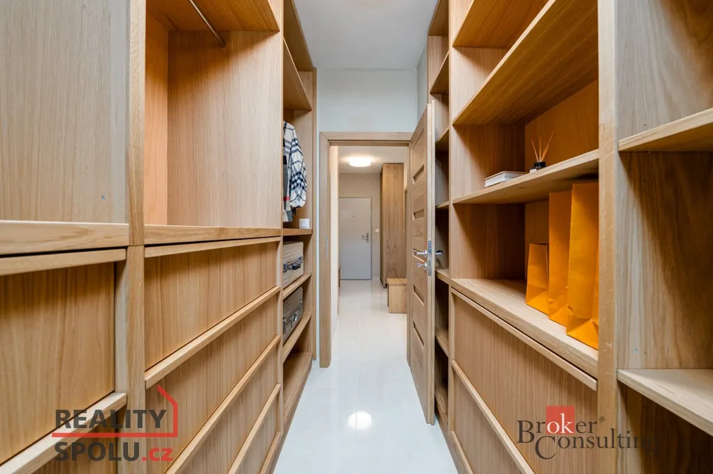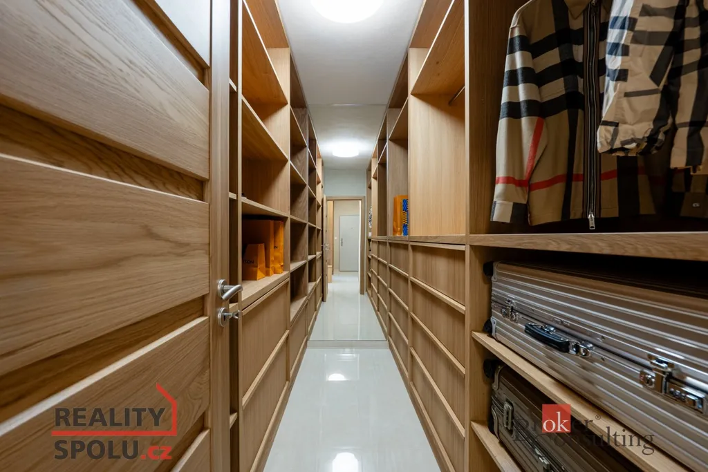 Jednotka o dispozici 3+kk ( 78 m² ) s prostornou šatnou je situována v posledním, pátém patře moderního domu a nabízí absolutní klid, soukromí a výjimečný standard bydlení. Největší dominantou je terasa o rozloze úchvatných 80 m², která obepíná celý byt a byla navržena jako soukromá relaxační zóna. Naleznete zde bioklimatickou pergolu, vířivku a vzrostlé stromy se samozavlažovacím systémem, které zajišťují maximální soukromí a navozují atmosféru luxusního apartmánu v přírodě. Každý vstup na terasu je tak malým únikem z města – do zeleně a ticha přilehlého parku.