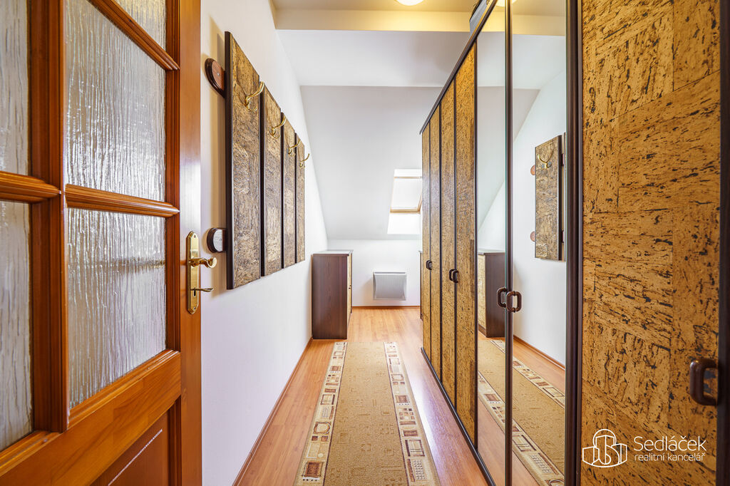 Nabízíme k prodeji prostorný a chytře řešený půdní mezonet 3+1 o užitné ploše 132 m² ve 2. patře menšího bytového domu. Předsíň je od bytu oddělena schodištěm.