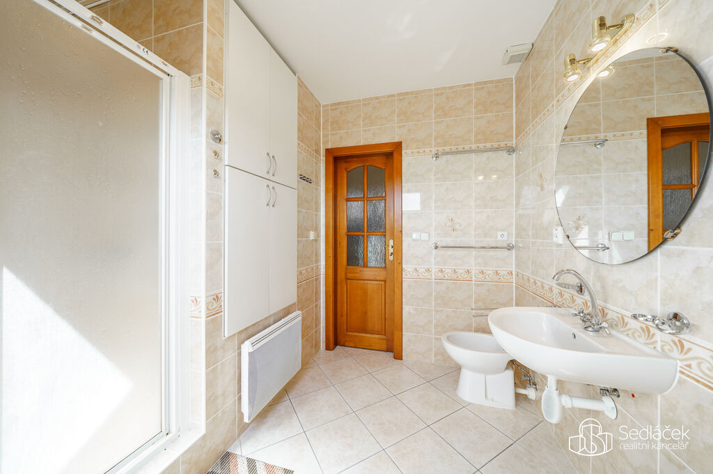 Dispozice bytu zahrnuje velkou předsíň, prostornou kuchyň, obývací pokoj, dvě ložnice, komoru, šatnu a prádelnu. Koupelna je vybavena vanou, sprchovým koutem i bidetem. Vytápění je vyřešeno moderními sálavými konvektory. Ty kombinují výhody sálavého a konvekčního tepla, ohřívají vzduch i pevné povrchy v místnosti a zajišťují tak příjemné a rovnoměrné teplo bez víření prachu. Navíc je v kuchyni, předsíni a koupelně podlahové topení.