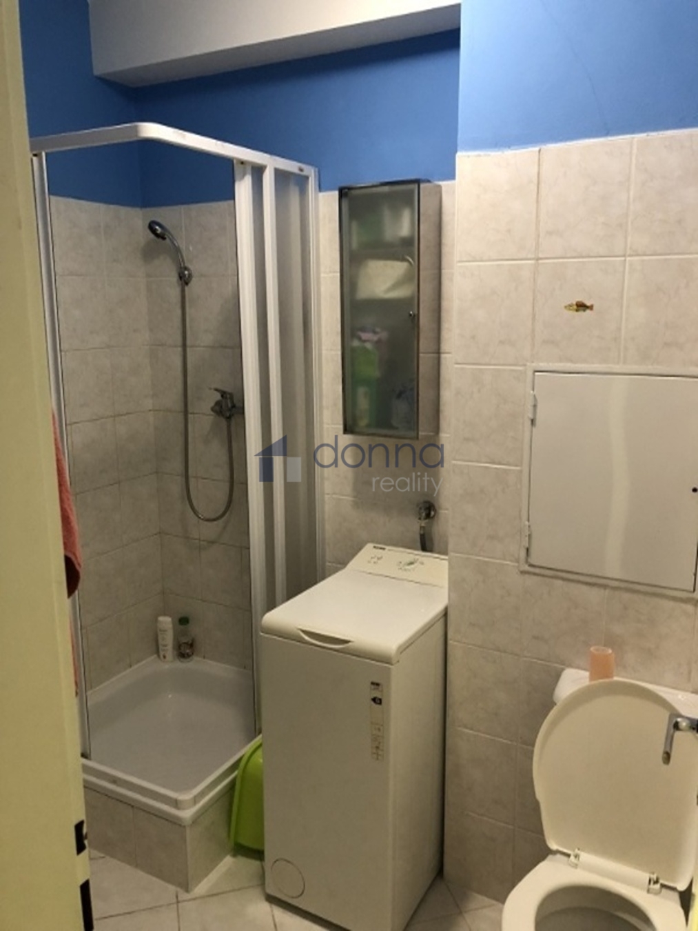 Byt je zařízený nábytkem a spotřebiči. V koupelně je sprchový kout a toaleta.