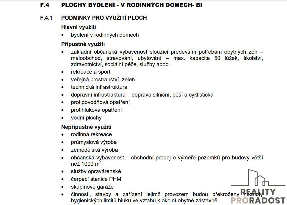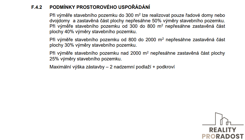 Původní stavba rodinného domu již není způsobilá k užívání, ale na parcele se díky ní nachází přípojky vody a elektřiny. Odpad je sveden do jímky, městská kanalizace se však nachází jen cca 7m od hranice pozemku. Plynovod je u vedlejšího domu ve vzdálenosti cca 6,5m od hranice pozemku. V územním plánu je pozemek v ploše pro bydlení v rodinných domech o maximálně dvou nadzemních podlažích a jedním obytným podkrovím.