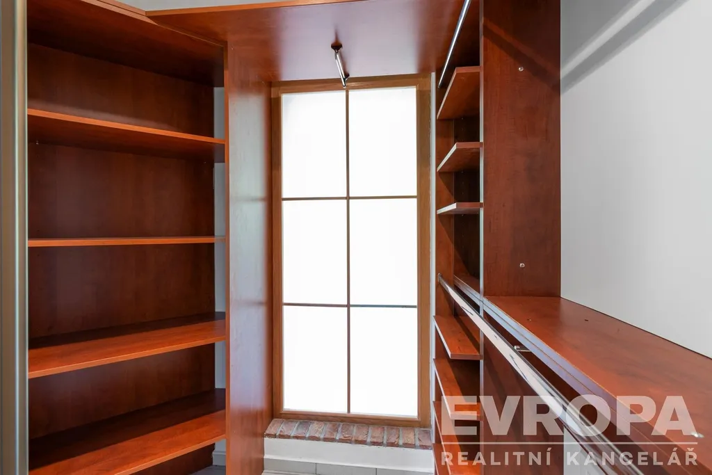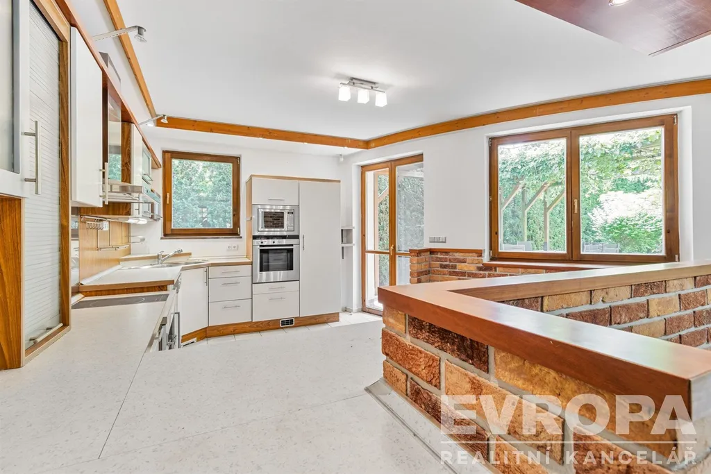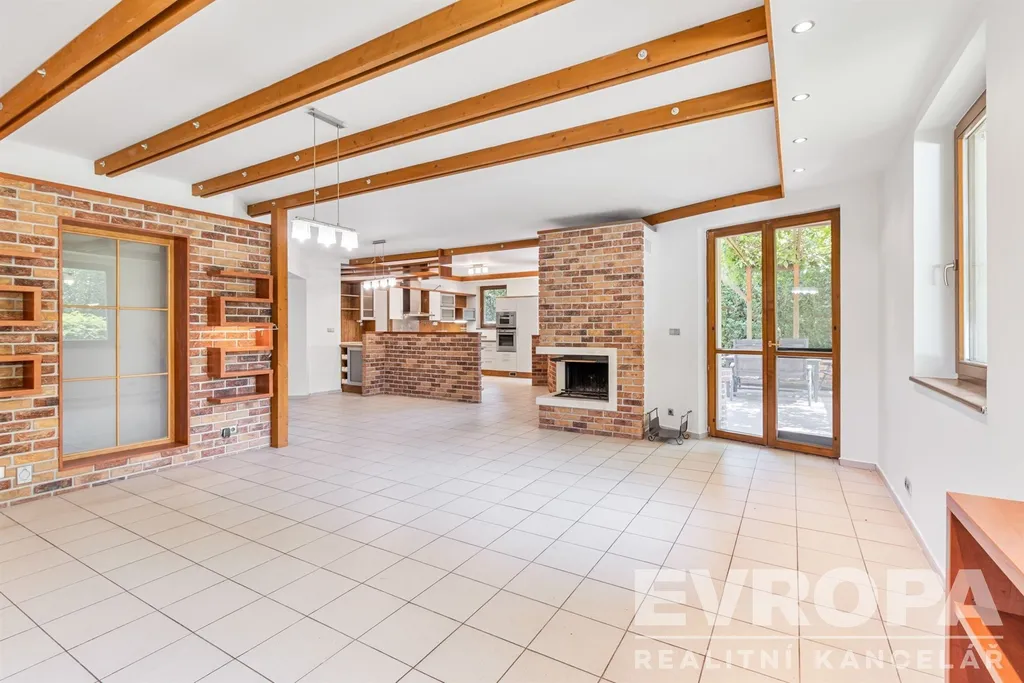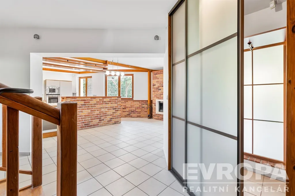 Dům je řešen jako 6+1, což umožňuje komfortní bydlení i pro početnější rodiny. Velkorysý obývací pokoj je spojený s prostornou kuchyní a jídelnou. Velká okna a francouzské dveře zajišťují dostatek denního světla a přímý přístup na terasu a do zahrady z pokoje i z kuchyně. V přízemí je dále pokoj pro hosty, koupelna s WC, šatna, prádelna, posilovna s výstupem na zahradu, finská sauna a herna. Ve druhém nadzemním podlaží jsou čtyři pokoje, samostatné WC, prostorná atypická koupelna s vanou, sprchou a dvěma umývadly, šatna.
