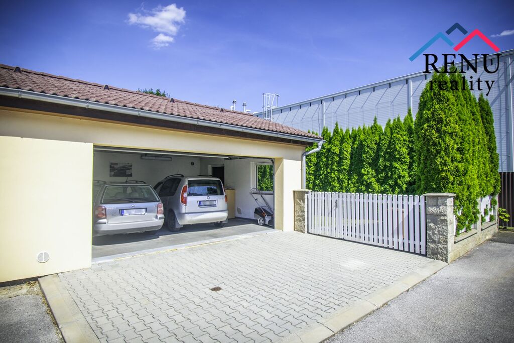 K rodinnému domu slouží velká garáž, kde s přehledem zaparkujete 2 vozidla + motorku a ještě vám zbyde místo na drobné zahradní vybavení. Značnou výhodou jsou další parkovací místa: Jedno za brankou, druhé před brankou a třetí před hlavním vchodem. Dům tedy disponuje parkovacím stáním pro celkem 5 vozidel. Před zahájením prodeje bylo provedeno čištění krytin a povrchů od anorganických a organických nečistot. Vytápění domu je zajištěno plynovým kotlem a krbovými kamny.