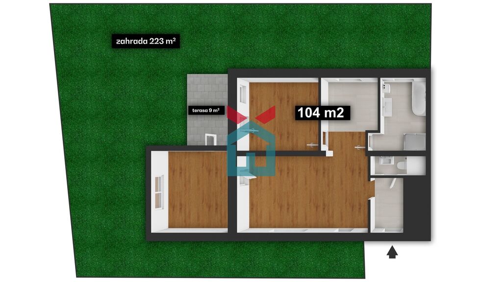 Předmětná jednotka č. 1 byt (3+kk, 1. NP 85 m2 + 9 m2 terasa = 94 m2) nabízí komfortní dispozici s prostornou chodbou, samostatným WC, koupelnou, kuchyní s jídelnou bez linky, obývacím pokojem, pokojem a ložnicí. K bytu náleží zahrada o rozloze 223 m2, přístupná ze všech místností, která poskytuje ideální prostor pro relaxaci a soukromí.
