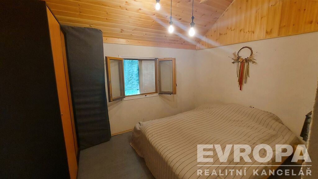 Exkluzivně nabízíme dřevěnou chatku o zastavěné ploše 59 m² na obecním pozemku o výměře 69 m² (nájemné pozemku je 1 500 Kč ročně). V chatě je zavedena elektřina roční spotřeba cca 2tisíce Kč, dále se platí obci za odpad (1.200 Kč/rok).