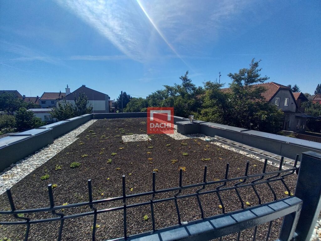 Přímý vstup na terasovou zahradu o ploše 70 m se zelenou extenzivní střechou nad garáží
