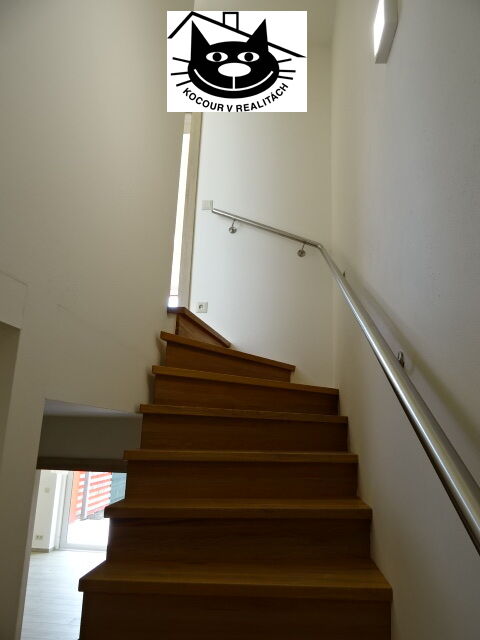 Nabízíme nezávaznou prohlídku bytu 3+KK s terasou,malou zahrádkou a s parkovacím stáním v novostavbě řadového domu v ul.Slunečná.Byt o podlah.ploše 97,5m2 se nachází v prvním i druhém NP domu č. 838 v příjemném podbrdském městečku Rožmitál p./Třemš. Řadový dům který tvoří pouze 5 prostorných bytových jednotek je postaven s využitím moderních technologii vč. zateplení pláště i střechy. Byt vybaven nadstandard zařizovacími předměty (dveře s obložkami, na míru zhotovená KL vč.vestavěných spotřebičů (el.varná deska vč.digestoře, horkovzduch trouba,myčka, MT),prostor bytu chráněn požárními hlásiči i moderním zabezpeč.zařízením. Byt je přístupný přes vstup. zádveří (5,16m2) do chodby (10,1m2),ze které je přístupná jak soc.část (sprch.kout Ravak s umývadlem – 2,8m2 + oddělená koupelna s vanou a se závěsným WC – 4,4m2) tak i prostorný a slunný OP vč. KK (31,4m2) z přístupem na krytou terasu (14m2) na kterou navazuje soukromá zelená plocha,(oddělena od ostatních ploch sousedních bytů praktickým plotem), o velikosti 58m2.Terasa je od OP odstíněna moderní žaluzií s el. ovládáním. Z chodby je po dřevěném schodišti přístupné 2.NP, ve kterém se nachází chodba (5,6m2), druhé WC (1,5m2) a dvě oddělené ložnice (16,9m2+14,4m2) se zkosenými stropy, ve kterých jsou osazena střešní okna. Podlahové krytiny v celém bytu tvoří moderní světlá dlažba,vytápění zajištěno vlastním plyn.kotlem prostřednictvím podlahového topení.Ohřev vody zajišťuje vlastní el. bojler.K bytu náleží podíl na společných částech domu (plocha před vstupem do bytu, která je osazena zatravňovacími dlaždicemi, ze které je přístupné venkovní parkovací stání o vel. 21,5m2 s výlučným užívacím právem).Tato moderní bytová jednotka, kterou Vám s velmi dobrou místní znalostí okolí nyní nabízíme ve výhradním zastoupení k prohlídce je připravena k nastěhování. Město Rožmitál disponuje veškerou potřebnou infrastrukturou,vč.Bus spojení (Praha, Plzeň či Tábor). V případě potřeby zprostředkujeme setkání i s úvěrovým profesionálem.