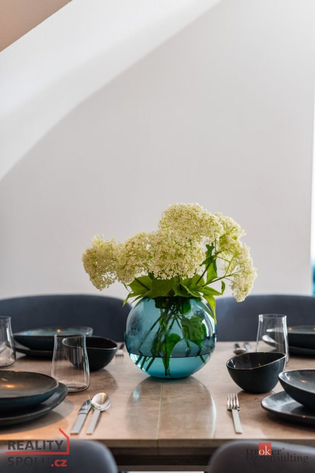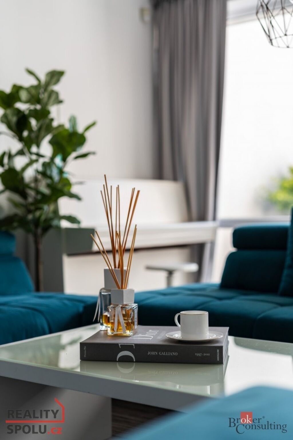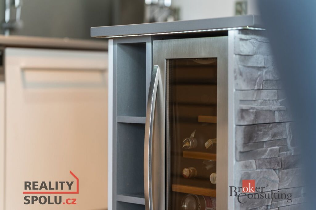 Dispozice domu je 4+kk a jeho celková plocha činí 152,1 m². V přízemí najdete prostorný obývací pokoj (24,6 m²), jeho dominantou je zcela nová moderní sedačka a velká televize. Dále kuchyňský kout (21,2 m²) s veškerými spotřebiči, jistě vás nadchne americká lednice, kávovar nebo zabudovaná vinotéka. Součástí kuchyně je také jídelna s rozkládacím jídelním stolem, který oceníte při větších rodinných setkáních. Z obývacího pokoje je vstup na útulnou terasu situovanou do vnitrobloku, která nabízí ideální místo pro relaxaci, grilování s přáteli nebo rodinné posezení. Pohodlí vám tu zajistí ratanový zahradní nábytek. Dále je tu vstupní chodba s úložným prostorem a botníky a samostatné WC, ve kterém je navíc umístěna pračka se sušičkou.