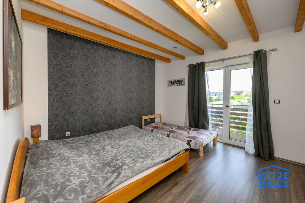 • další dvě obytné místnosti a praktická šatna , koupelna se saunou a oba pokoje mají výstup na lodžii.