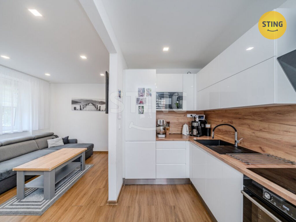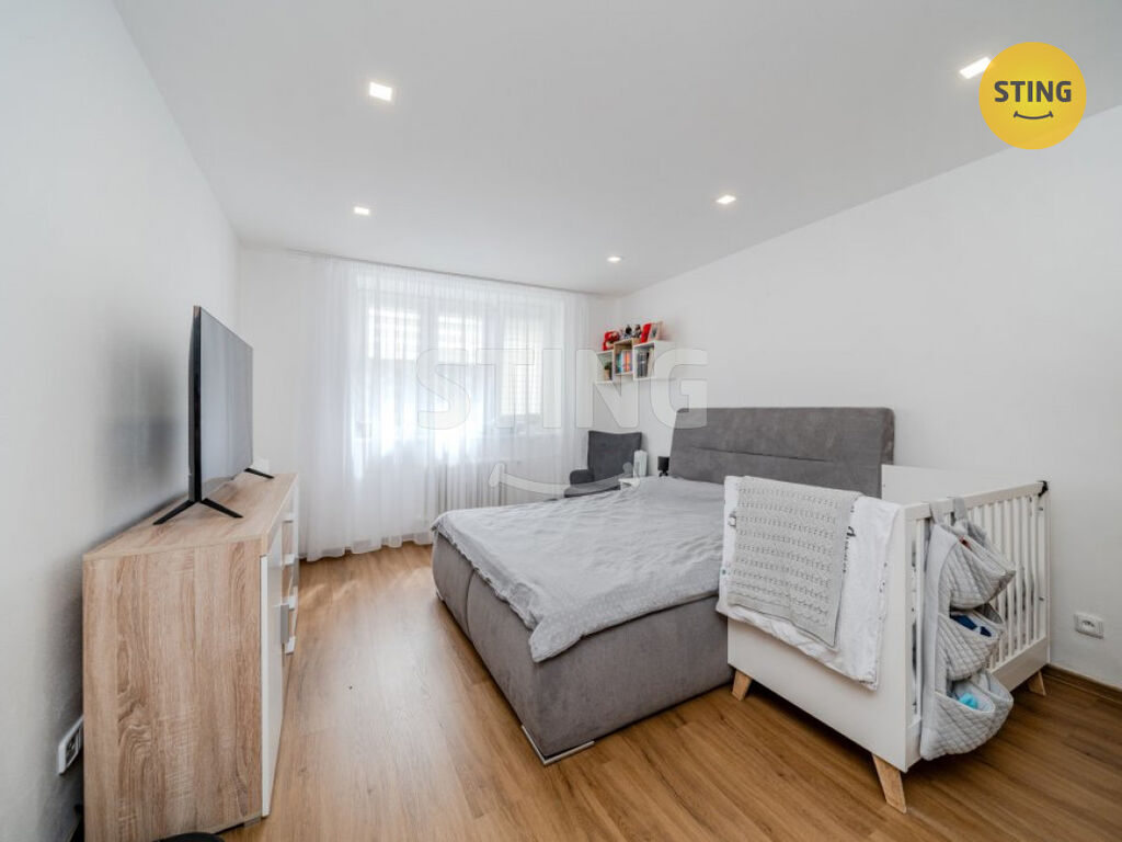 Dispozice bytu je řešena moderně a vzdušně – prostorný obývací pokoj s kuchyňským koutem, dvě samostatné ložnice, koupelna s vanou, umyvadlem se skříni a zrcadlem, toaleta a dostatek úložného prostoru. V rámci rekonstrukce byly provedeny nové rozvody elektřiny, vody a odpadů, nové podlahy, omítky, interiérové dveře i moderní kuchyňská linka na míru.