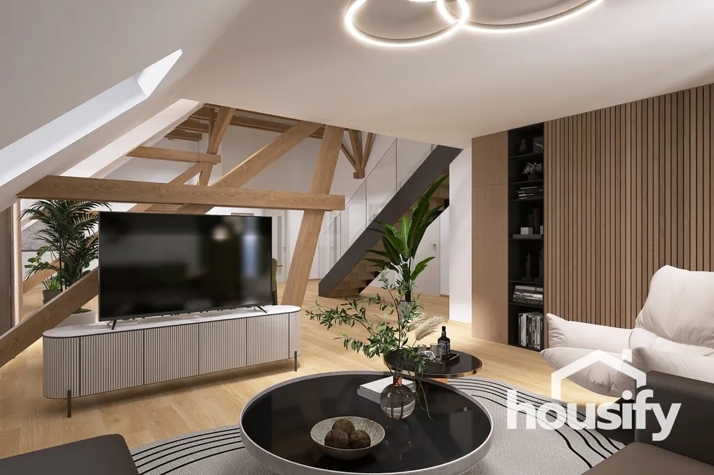- Prosvětlený loft s přiznanými trámy