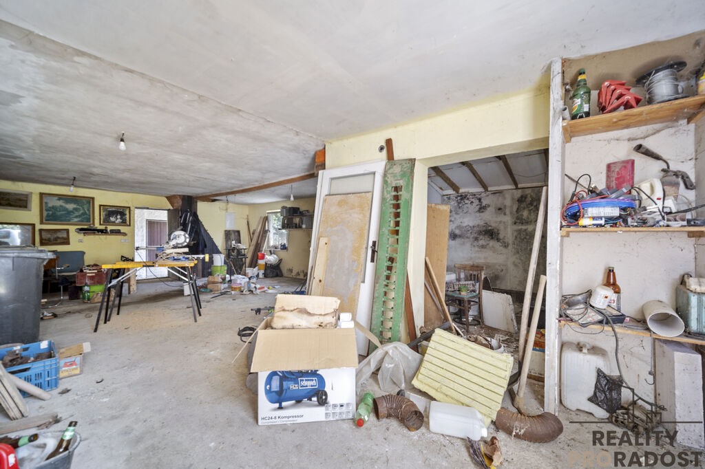 Prodej atypického skladového prostoru / garáže / dílny se zahradou a bazénem