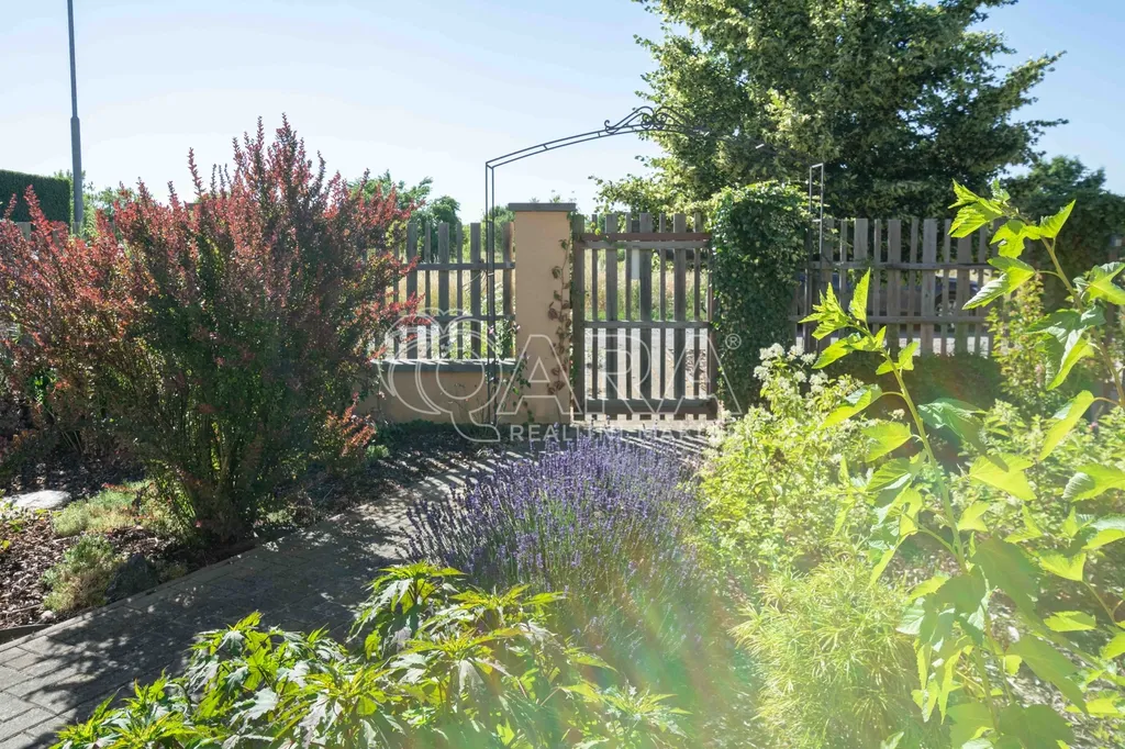 Dispozice přízemí o celkové vnitřní ploše 147,9 m2 + terasa o velikosti 27,6 m2: vstupní hala, chodba, kuchyň spojená s jídelnou, obývacím pokojem a vstupem na terasu, spíž, ložnice s vestavnou skříní a vstupem na terasu, dva menší pokoje, koupelna s vanou a WC, samostatné WC, technická místnost a garáž. Oplocená zahrada s brankou a vjezdovou bránou.