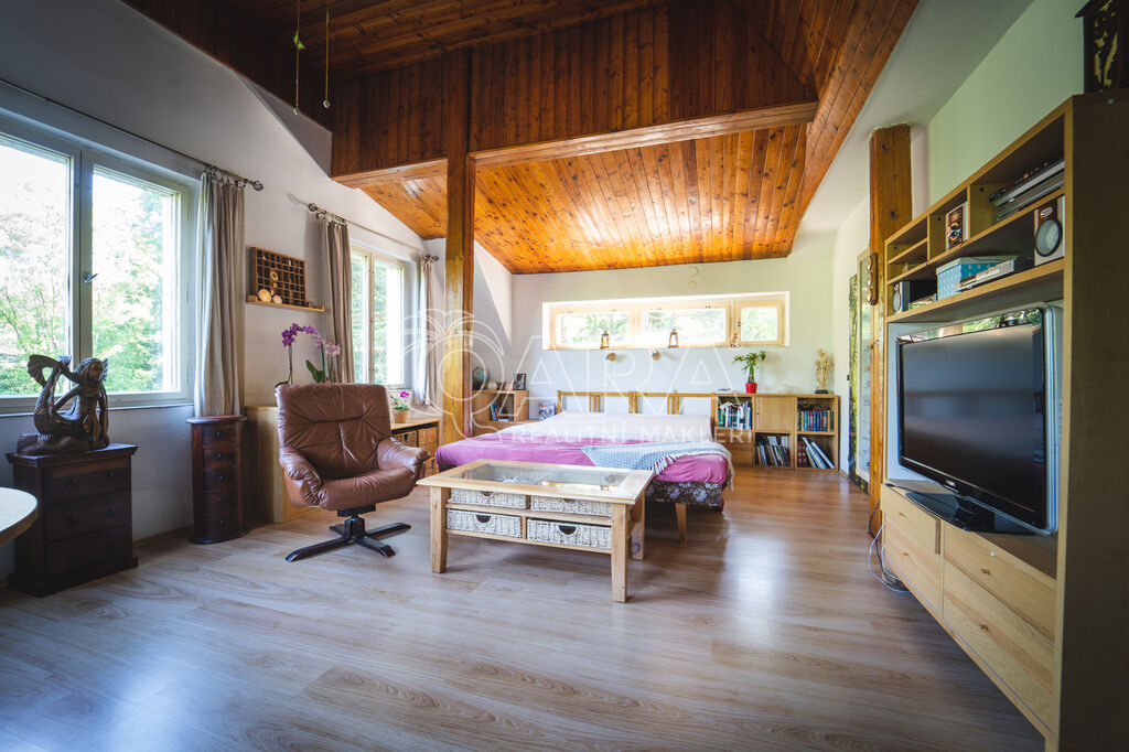 Prostorná vila, 8+1, 240 m2, k rekonstrukci či úpravě přesně dle Vašich představ. V přízemí velkorysý obývací prostor 45 m2 s kuchyní a krbovými kamny, pokoj pro hosty, vstupní hala s pracovnou, koupelna. V patře prostorný obývací pokoj 41 m2 a další 3 ložnice, hala s pracovnou a vstupem na terasu s krásným výhledem. Ve druhém patře se nachází obytné podkroví.
