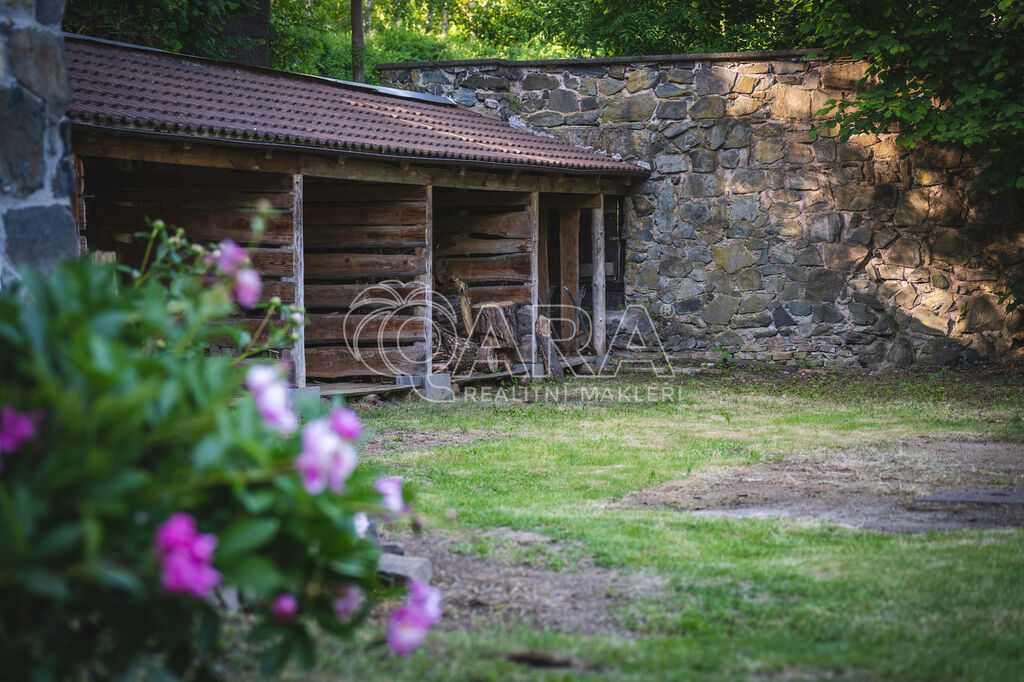 Vytápění krbovými kamny s teplovzdušným rozvodem, voda zajištěna dvěma studnami. Na pozemku dále vedlejší stavby cca. 100 m2, velká garáž, sklad, sklípek, dřevníky a taktéž jezírko.