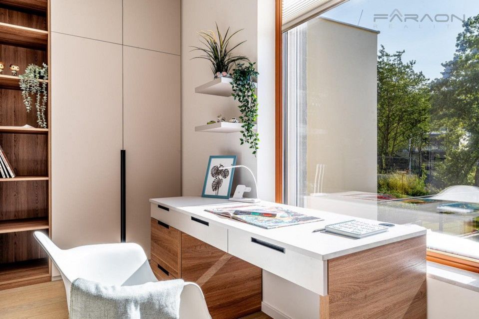 Pronájem nyní dokončeného a částečně zařízeného rohového řadového rodinného domu 5+kk (182 m2) na pozemku (335 m2) umístěného v žádaném rezidenčním projektu Top Rezidence Na Pomezí s výbornou dostupností do centra města a zároveň v sousedství lesoparku Košíře-Motol, rozhledny Cibulka a přírodní rezervace Vidoule . Unikátní rodinný dům disponuje nejmodernějšími technologiemi, které zvyšují komfort bydlení. Jedná se zejména o digitální systém chytré domácnosti Loxone, klimatizaci v celém domě, rekuperaci, centrální vysavač, exteriérové žaluzie, bezpečnostní zabezpečení, vlastní plynový kotel, robotická sekačka na zahradě, fotovoltaika na střeše domu, nabíječka pro elektromobily. V ceně pronájmu zahradník (4x ročně údržba, pokaždé pletí a hnojení, 2x ročně vertikutace trávníku, 2x ročně střih keřů, na jaře nastavení závlahy, na podzim zazimování, správa zavlažování prostřednictvím Loxone)