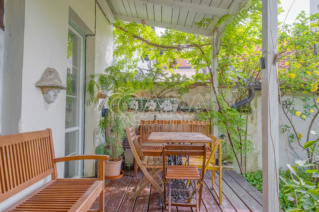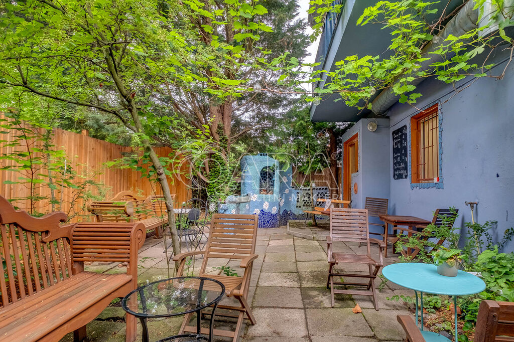 Velkým bonusem pro tuto nemovitost je zahrada o celkové ploše 630 m2 přístupná z ulice Fričova, která může mít multifunkční využití.