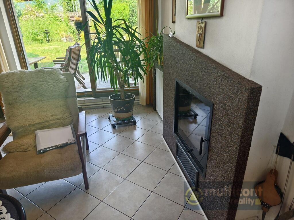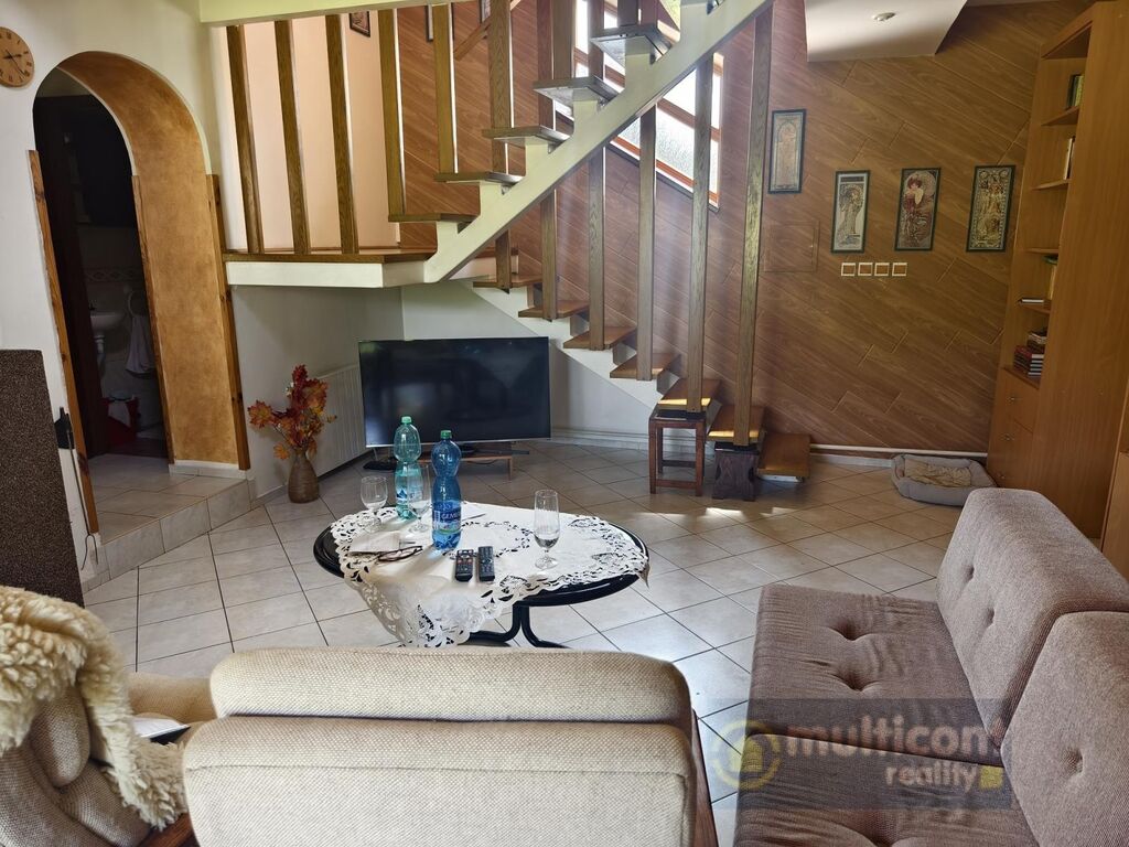 Hale v přízemí, jejíž podlahu tvoří vkusná a kvalitní dlažba, pohledově vévodí horkovzdušný krb s vložkou, napojený na domovní systém vytápění, což lze využít nejen v přechodových ročních období a lze jednoduše také přejít na hlavní způsob temperance, jež je zajištěna plynovým kotlem.