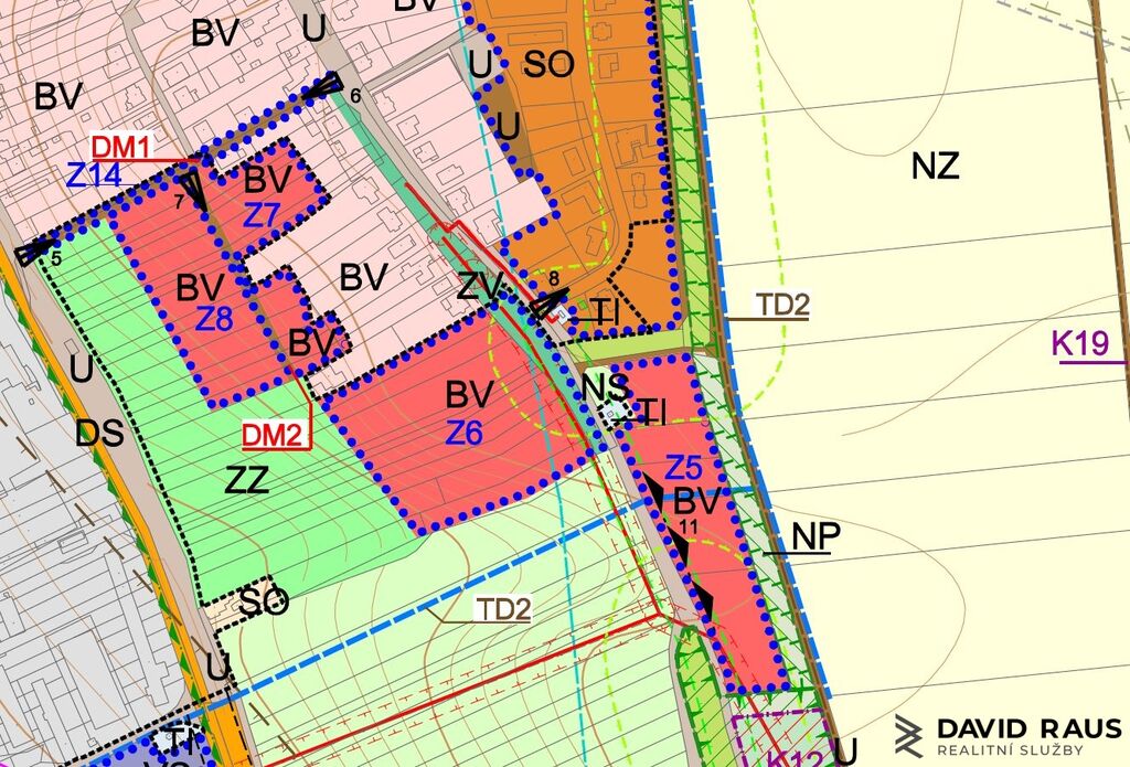 Přibližně 9 300 m² je dle územního plánu určeno k zástavbě, zbývající plocha je vedena jako zeleň. Při vstupu má pozemek šíři cca 63 metrů, což umožňuje pohodlný přístup i případné rozdělení na více parcel.