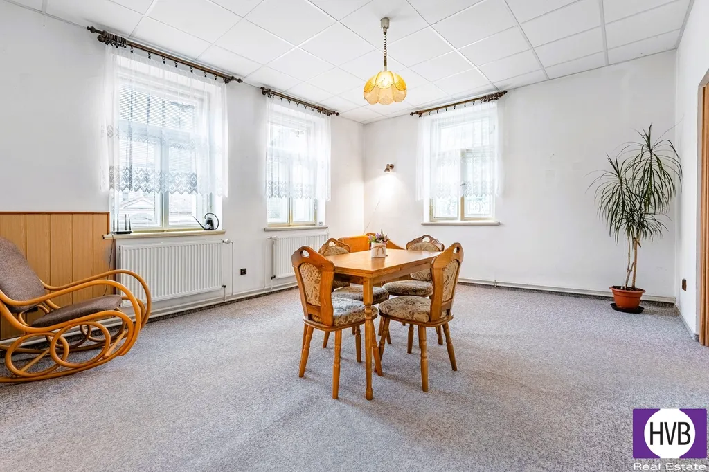 Nabízíme na prodej RD se dvěma bytovými jednotkami přímo na náměstí v Protivíně. V přízemí domu je nebytový prostor 120m2, který sloužil dříve jako ordinace ( možno využít jako obchodní prostory, kanceláře, kosmetický salon - je zde místnost se saunou a solárium). V patře se nachází velký byt pro rodinu 5+kk s terasou, s výhledem na řeku, v podkroví byt 2+1. Na dvoře prostorná garáž 26,4 m2 a skladové prostory. Lze parkovat i před domem na vyhrazených místech. Dům prošel rozsáhlou rekonstrukcí v roce 1996 ( rozvody vody, elektřiny, vytápění, podlahy). Každá jednotka má svůj plynoměr i elektroměr. Vytápění a ohřev vody je řešeno kondenzačními kotly z roku 2013. Nebytový prostor má svůj vlastní vchod z náměstí. Do bytů se vchází z boční strany domu. Doporučuji prohlídku. Dům lze využít jak ke komerčním účelům, tak k trvalému bydlení. Půdorysy domu na vyžádání. Penb se připravuje. Více info v RK.