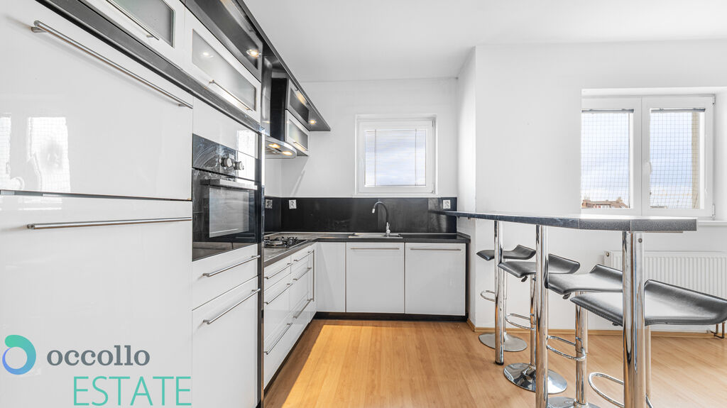 Byt zaujme světlým interiérem, vzdušností a praktickým uspořádáním. Vstupní předsíň poskytuje dostatek úložného prostoru a vede do všech místností – do obývacího pokoje s kuchyňským koutem, vybaveným linkou na míru a vestavěnými spotřebiči, dále do ložnice, samostatného pokoje a koupelny s vanou a toaletou. Orientace na jih a sever zajišťuje příjemné světelné podmínky po celý den.