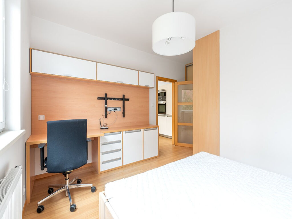 K dlouhodobému podnájmu nabízíme krásný byt o dispozici 2+kk v klidné lokalitě Praha-Velká Chuchle. Byt o celkové výměře 55 m2 se nachází v 2. NP moderního bytového domu z r. 2010 v rezidenční čtvrti Na Hvězdárně, v atraktivní lokalitě nad chuchelským dostihovým závodištěm s unikátními panoramatickými výhledy na řeku Vltavu, Prahu a dále na okolní zelené kopce směrem na Slivenec a Malou Chuchli. K bytu patří i balkon a venkovní parkovací stání (zahrnuto v ceně) a rezidentům je k dispozici kočárkárna.